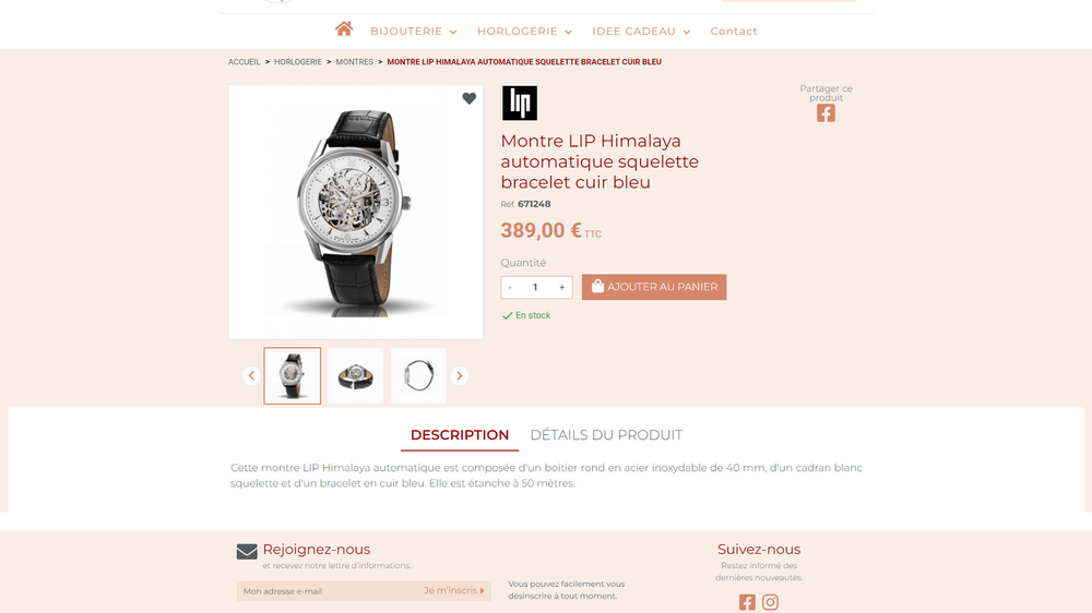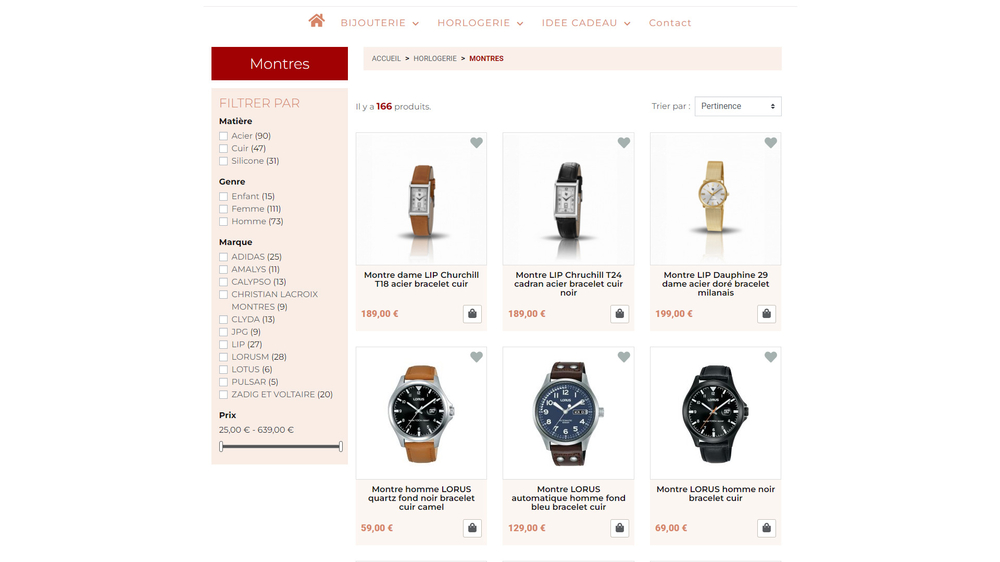 Ce projet de site e-commerce a nécessité l'intégration d'un connecteur permettant d'importer le catalogue (produits, catégories, marques, attributs, images) directement depuis le logiciel de gestion de la bijouterie.