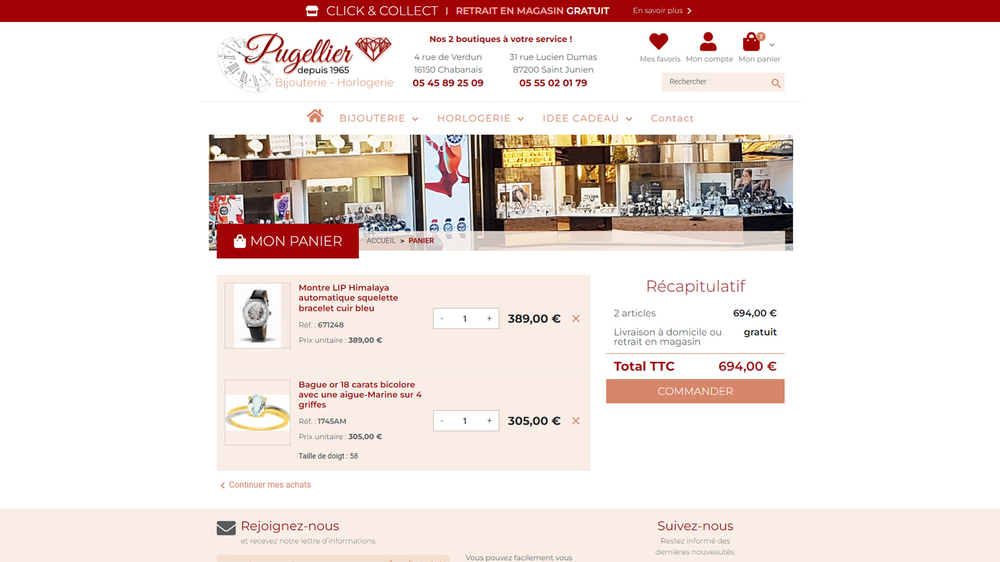 Buildeo a réalisé le site Internet e-commerce de l'entreprise familiale Pugellier située à Saint Junien et Chabanais, 2 boutiques de créations, réparations et ventes de bijoux.