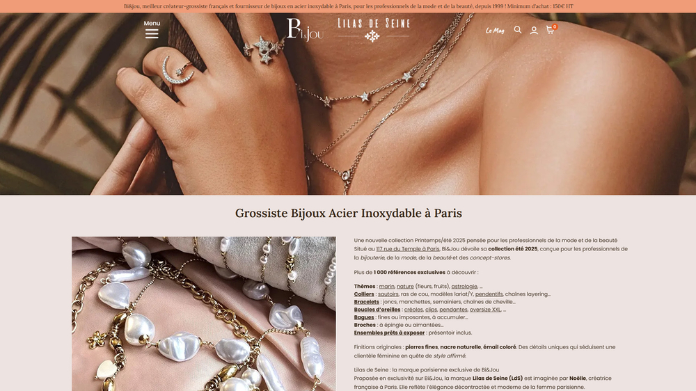 Bi&Jou, situé à Paris, est un grossiste français en bijoux acier pour les professionnels. Son site marchand développé sous l'ancienne solution OS Commerce ne pouvait plus être mise à jour, il nous a demandé de le migrer sur PrestaShop.