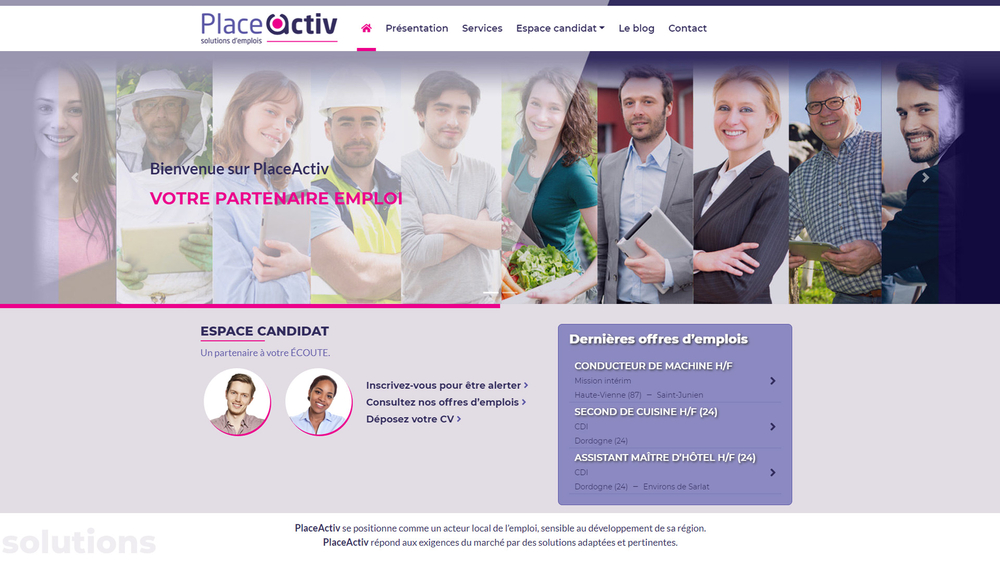 PlaceActiv a confié à Buildeo la réalisation de son nouveau site internet permettant à son agence sur Saint Junien de publier plus facilement les offres d'emplois.