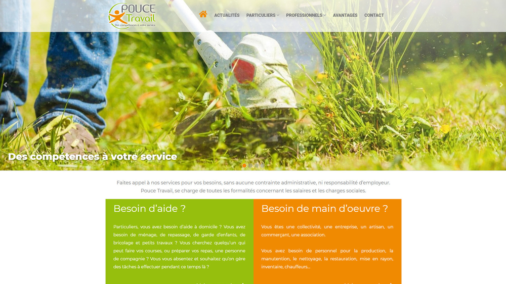 Buildeo a réalisé le nouveau site internet de Pouce Travail, association de service à domicile pour les particuliers, recherche de personnel pour les professionnels sur Saint Junien et ses environs.