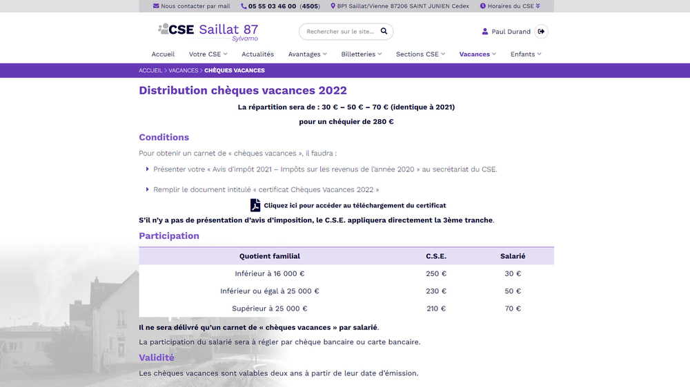 Le nouveau site est un site extranet dont l'accès est uniquement réservé au CSE et aux salariés de Sylvamo. Il contient une interface d'administration simple d'utilisation permettant au CSE de publier du contenu à destination des salariés. Les salariés accèdent au site grâce à leurs comptes individuels privés créés au préalable par le CSE. Ils peuvent ainsi voir les diverses offres, la billetterie, le mode d’emploi de commande et réservation des différentes billetteries proposés par le CSE Sylvamo depuis leur ordinateurs ou leurs smatphones.