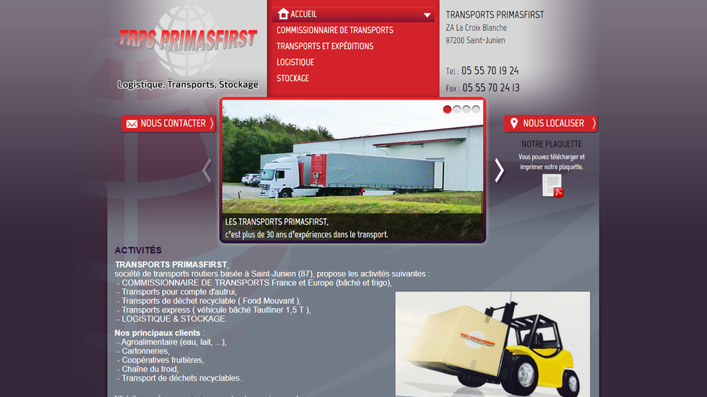 Transports Primasfirst, société de transports routiers basée à Saint-Junien avec 30 ans d'expérience, a confié à Buildeo la création de son site Internet.